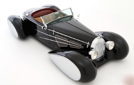 What do you do when you have a craving for a classic Bugatti or Delahaye but can neither afford one, nor would you want to cut one up to make it into your fantasy dream car? The answer Terry Cook came up with was to build such a car from scratch. Starting with one of his composite Generation II Boattail Speedster bodies, which are manufactured by his company DECO RIDES of Long Valley, NJ, he radically modified the design incorporating styling ideas from a number of different cars. The body itself was designed eight years ago for Cook by top hot rod builder/designer Chip Foose of Huntington Beach, CA. It is a cut down and streamlined version, inspired by the early Al Leamy and later Gordon Buehrig styled Auburn Boattail Speedsters. Relatively unknown clay modeler Vince Gardner contributed a lot to the styling of the second generation Auburn Boattail.